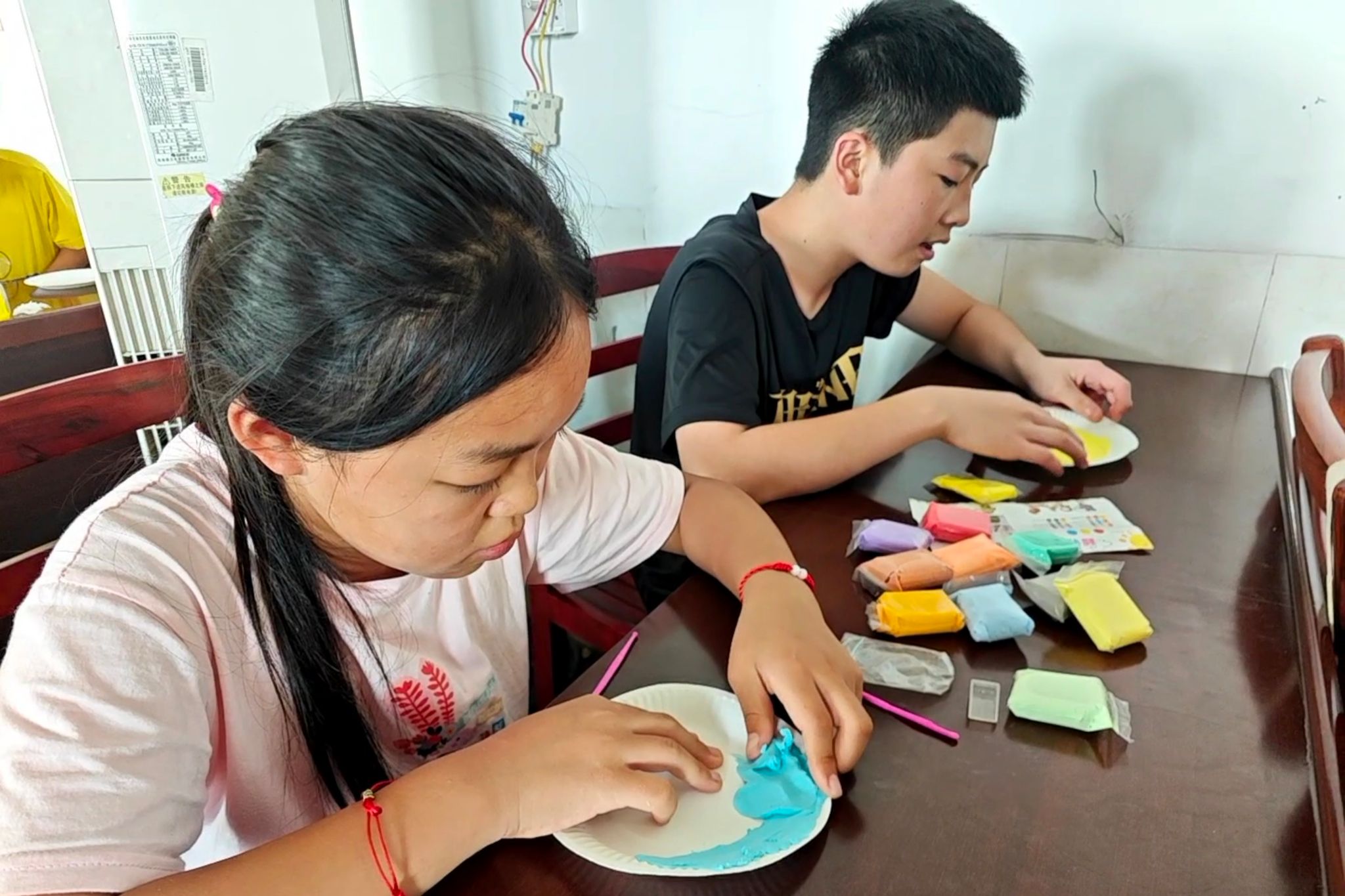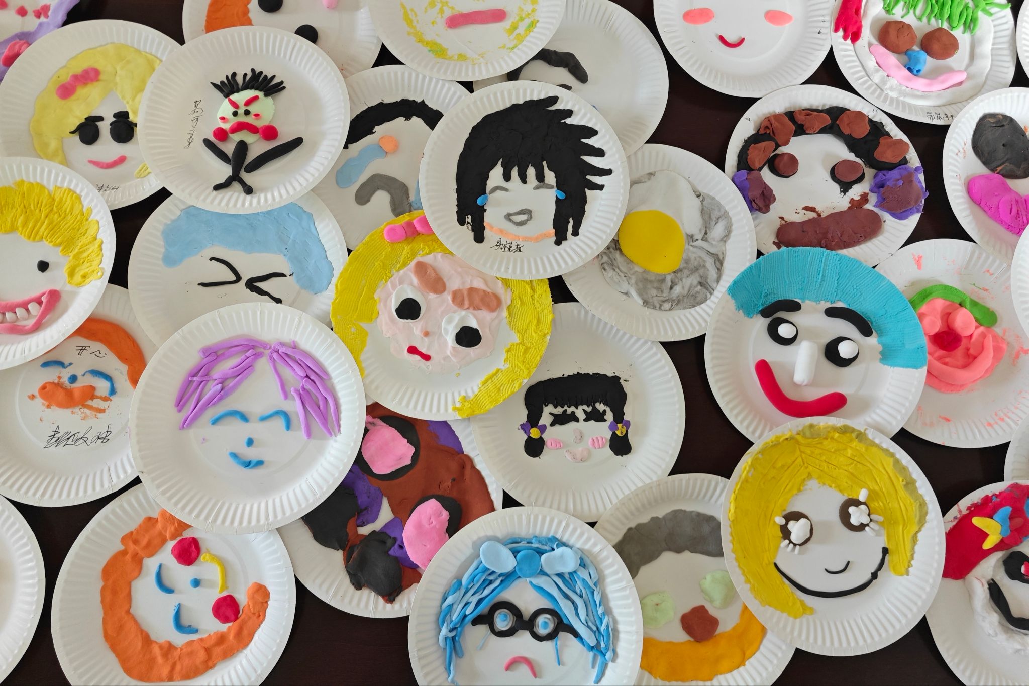 课程设置“手工制作”内容,主讲人分发材料,鼓励孩子们用五彩斑斓的黏土自由创作,将内心的抽象感受转化为情绪脸谱。学生专注塑形积极完成属于自己的“情绪艺术品”。