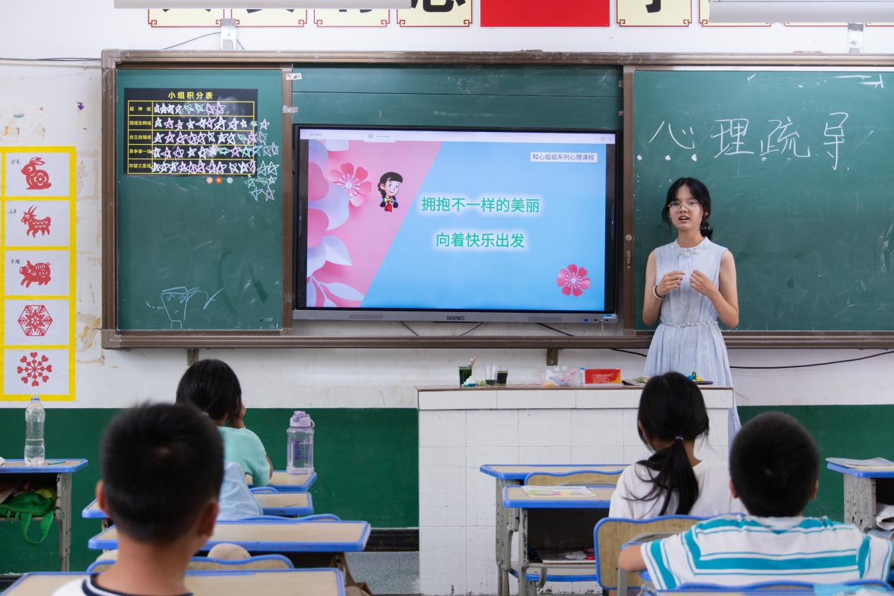 (通讯员 敖妍琦 赵顶)为了帮助同学们缓解学习压力,疏导负面情绪,增强心理调适能力,7月18日上午,英国365集团“青衿之志,履践致远”暑期实践团在寨市学校开展了主题为“拥抱不一样的美丽,向着快乐出发”的心理疏导主题班会。此次班会由实践团成员张宇君主讲。