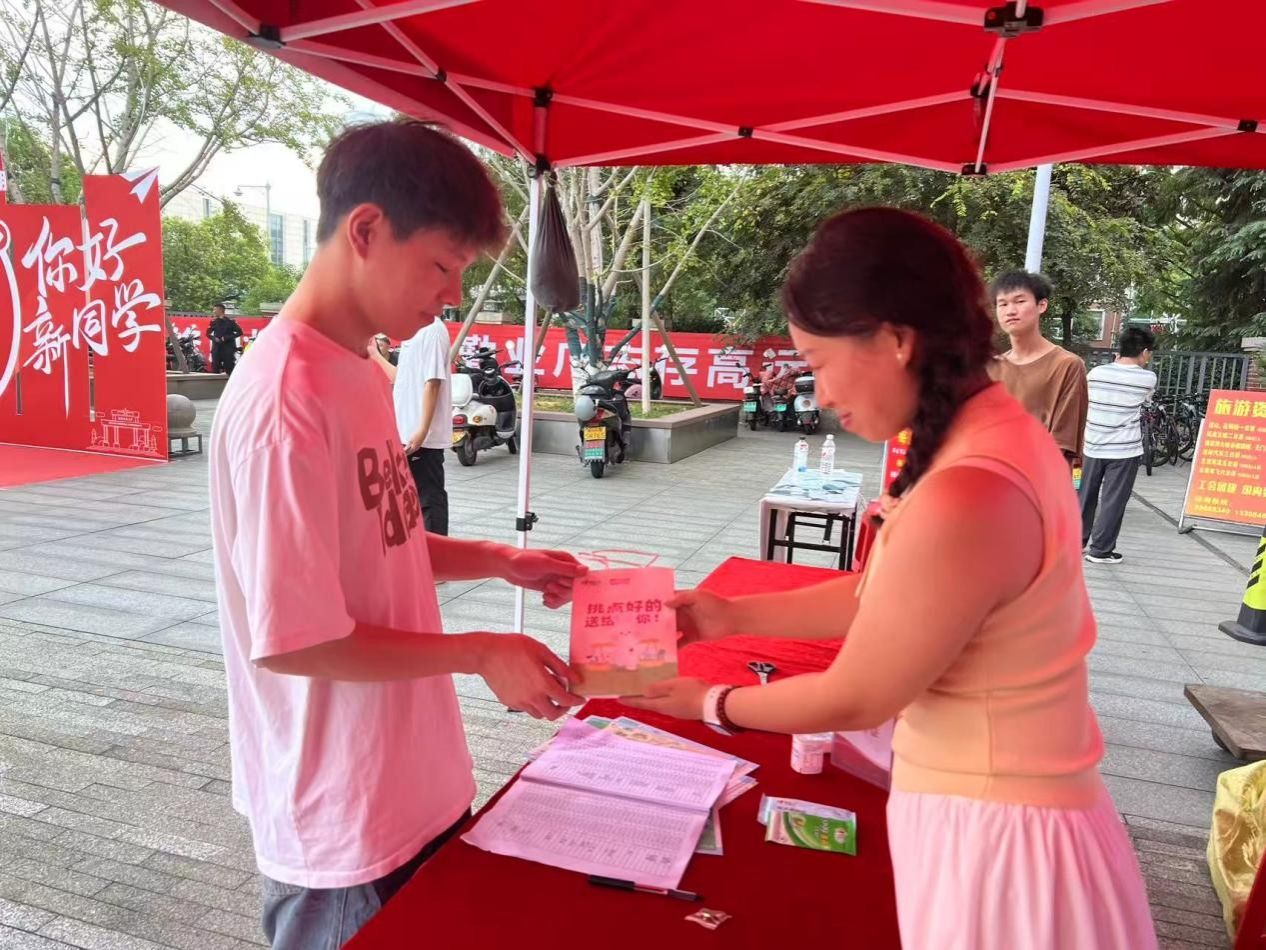 报到现场,恒安集团为每位新生赠送开学礼包,包括心相印、七度空间等品牌的礼品,为新生送来祝福。