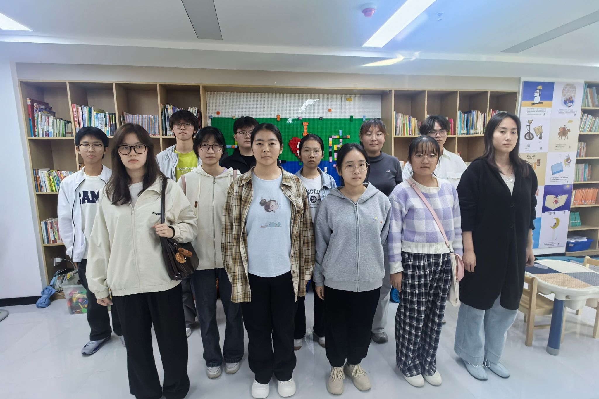 活动当天,志愿者们准时集合签到。负责人张文燕讲解注意事项,随后进行分组并确定小组分工。各组志愿者在负责人带领下前往社区图书馆,有序开展图书整理与清洁工作。一组志愿者将破损书籍单独存放并按文学、科技、少儿等大类分区,同时使用纤维布清洁阅读区桌面,确保图书馆整洁有序。另外一组志愿者,整理收纳待循环处理的书籍,并通过邮递的方式寄给贫困地区的学校。活动结束后,全体人员在一楼大厅集合,并合影留念。