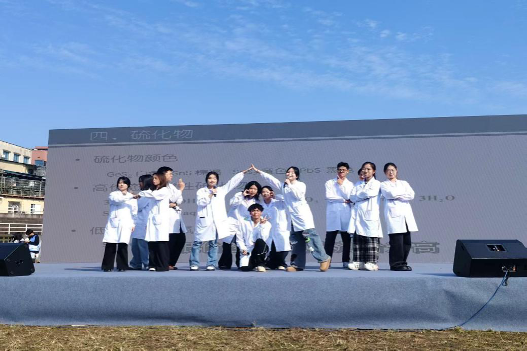 此次活动以化学特色为核心设置互动体验环节,通过知识问答、实验闯关等形式传递化学魅力。理事会成员向驻足同学系统介绍协会趣味化学实验、社区公益宣讲等核心活动体系,同时联合球社协会演绎歌剧《稻香(化学版)》,表演将学科元素与文艺表演创新融合,吸引众多同学咨询报名。