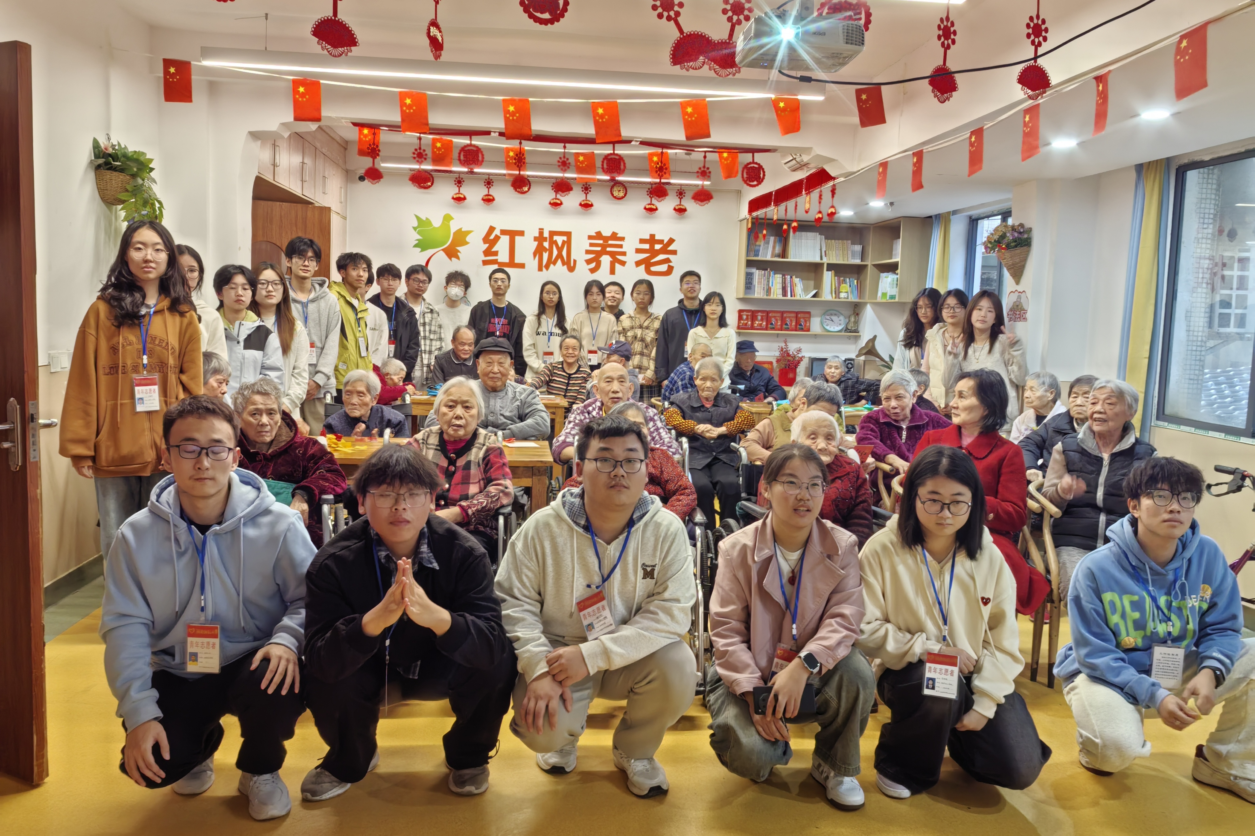 志愿者与老人们合影留念