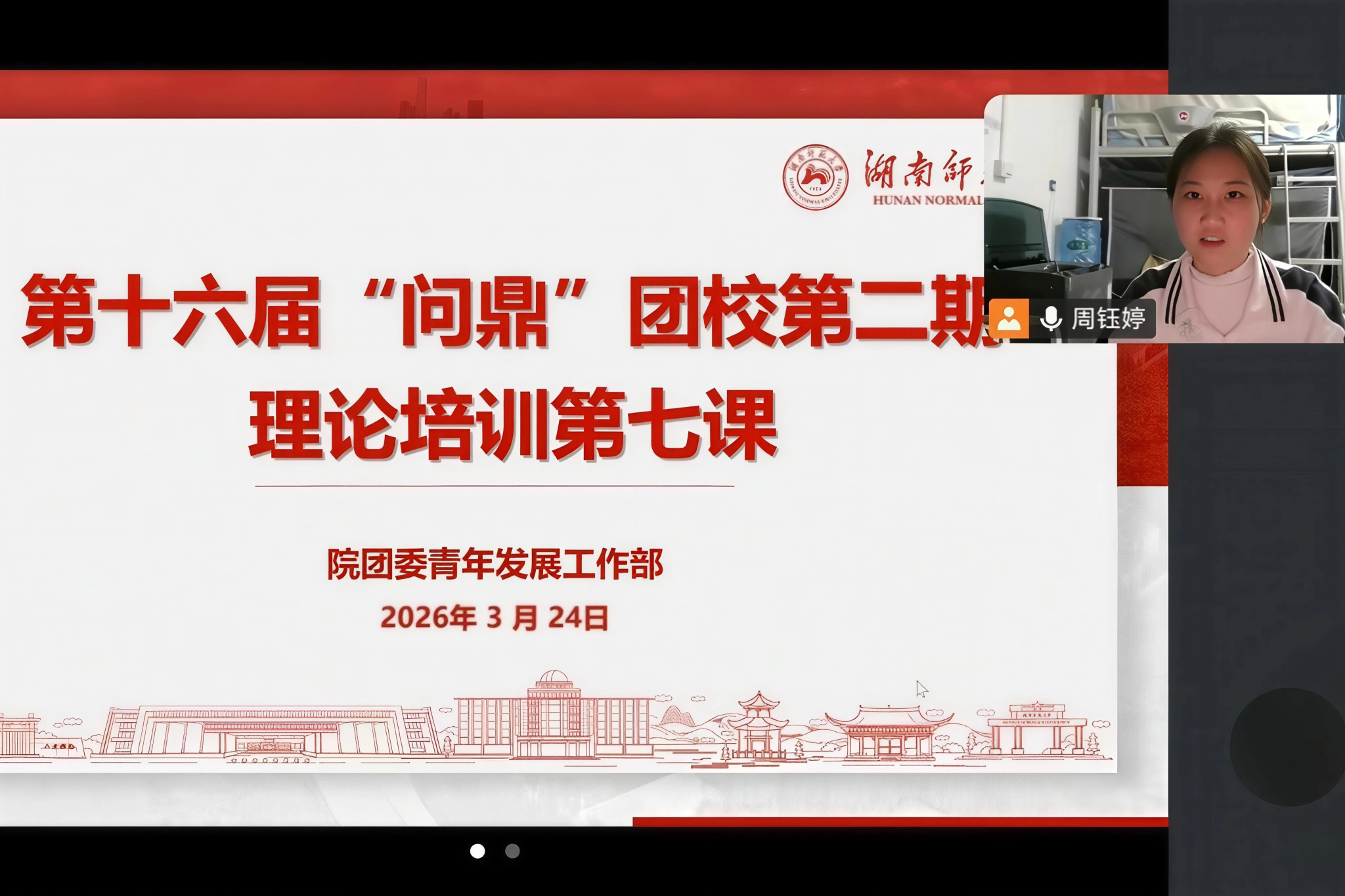 (通讯员 周钰婷 杨绣云)3月24日下午,英国365集团第十六届“问鼎”团校理论培训第七课以线上腾讯会议形式开展。此次活动以“遵义精神永铸,红色薪火相传”为主题,由院团委青年发展部干事周钰婷主持,第十六届“问鼎”团校全体学员共同参与。
