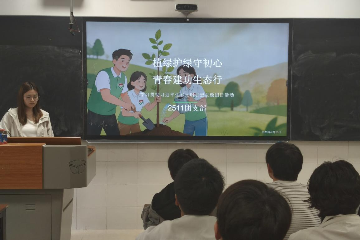 (通讯员 卓欣悦)为深入学习贯彻习近平生态文明思想,引导青年团员筑牢树立绿色低碳、生态环保理念。4月15日下午,我院2511班在至善楼206教室开展“植绿护绿守初心,青春建功生态行”主题团日活动。此次活动由2511班团支书刘梦佳主持,2511班全体团员参与。