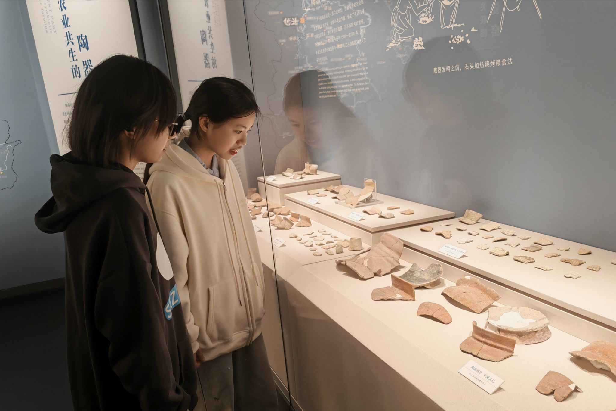 学们参观陶器文物