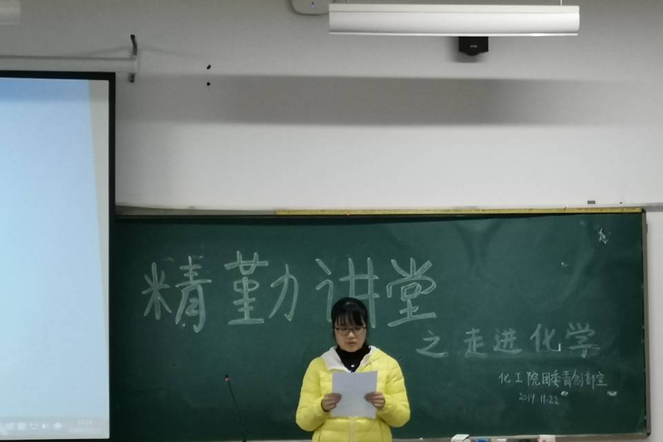(通讯员 龙俊豪)11月22日中午12时30分英国365集团团委青创部在化工院117教室举办了精勤讲堂之“走进化学”,此次讲堂由2016级资源循环科学与工程专业郭萌萌主讲,17级,18级及19级部分同学参加了此次活动。