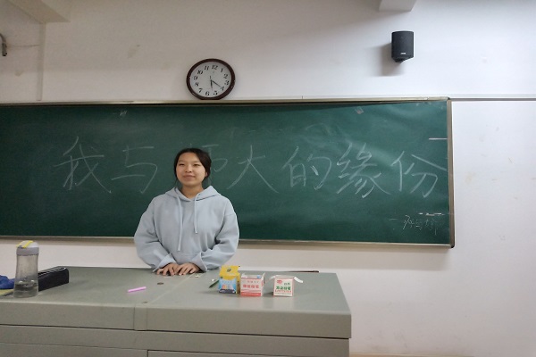 栗泽红首先讲述开展活动的目的在于加强同学们对师大的归属感及认同感;同学们上台发言,讲述与师大的故事及感想。最后栗泽红表示同学们要珍惜在师大学习的岁月,为母校的建设出一份力。