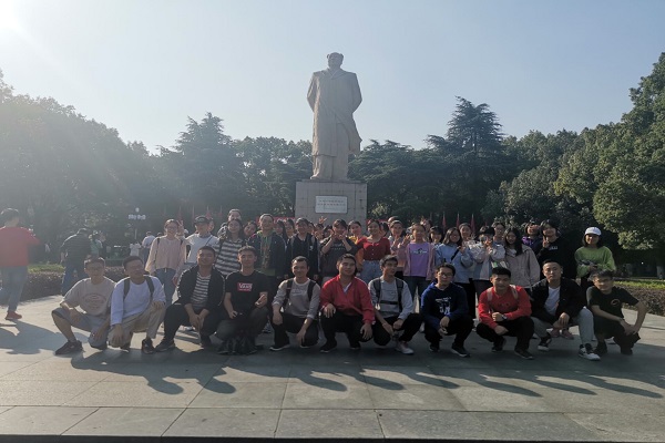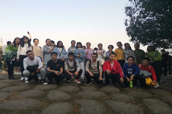 活动在温和的阳光下正式开始,同学们愉快地走向岳麓山,来到东方红广场毛主席向下时全体同学合影留念,在两个小时左右的爬山过程中,同学们欢声笑语,齐心协力,互帮互助,终于在一阵微风中成功登顶。在高处,同学们合影留念,女生委员卡得尔亚•艾尼组织了狼人杀、真心话大冒险等活动。太阳渐渐下山,此次活动在一片欢声笑语中结束。