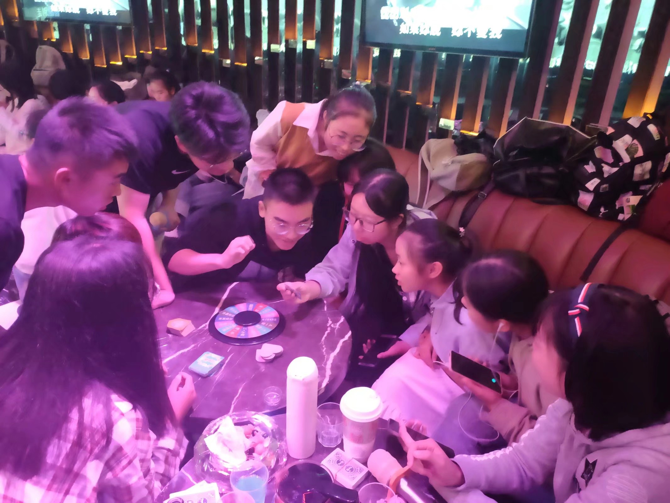 在男生节来临之际,1908班趁周日休闲,举办了此次男生节聚会。在KTV包厢中,同学们释放个性,展现自我。唱歌、狼人杀、真心话大冒险……这些活动,同学们都是积极参加。在全班参与的兼容唱歌、真心话大冒险的歌词接龙中,气氛更是热烈。