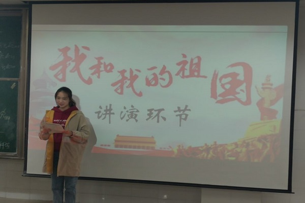 刘玉姣首先讲述开展活动的目的在于加强同学们对祖国的归属感及认同感;肖嘉慧上台进行发言,讲了自己在活动中的收获与认识。最后刘玉姣表示同学们要努力学习,为中华民族的伟大复兴而奋斗。