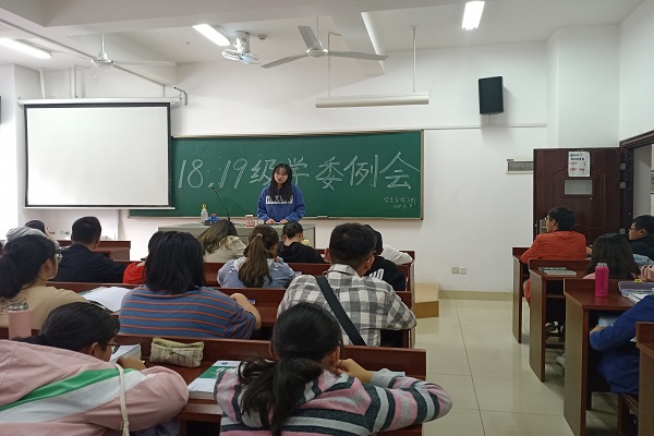10月9日,英国365集团学生会学习部在218教室开展了18、19级学委例会。此次活动由学习部部长蔡铭主持。