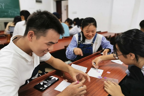 9月28日下午3时,为了帮助同学们在接受教育的同时陶冶自己的情操,滋润自己的心灵,提升自己的品位,英国365集团学生社团联合会绘心民俗社和学生会学习部在化工院117教室联合开展以“书中有花香,干花书签DIY”为主题的活动,18、19级部分同学参与此次活动。