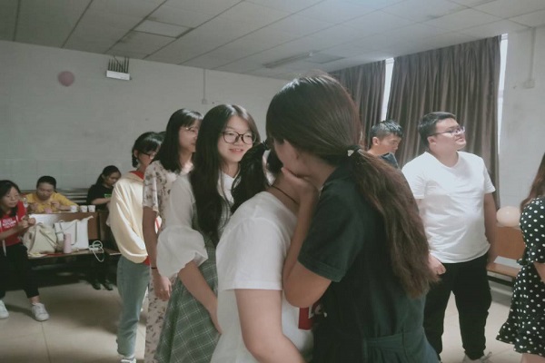 女生兼心理委员潘星月主持此次班会,此次班会的主要目的是庆祝石硕,李金蓓,陈语嫣,刘鹤,刘熳,丁艳等同学的生日。