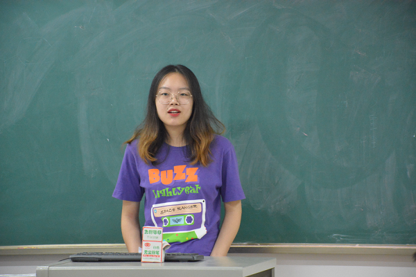 贾育红播放爱国歌曲视频,并对会议流程作出简要安排。随后,1604班学生就暑期实习心得及中华人民共和国成立七十周年感想两个方面,按学号上台进行演讲汇报。尹笃林对演讲内容丰富,仪态自然且脱稿的学生提出表扬,并随机对发言学生进行针对性提问。