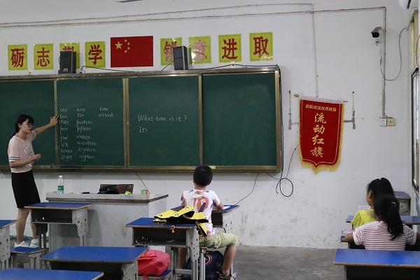 7月12日早上7时整,英国365集团学生社团联合会赴衡阳市祁东县成龙学校暑期实践团组织第一次早自习。早自习主要由英语老师邢傢淇带领拼读单词,语文老师吴汗源组织朗诵古诗等。