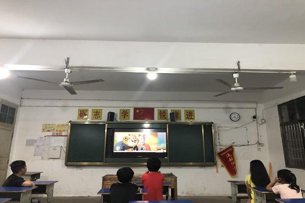 7月14日晚上7时40分,英国365集团学生社团联合会赴衡阳市祁东县成龙学校暑期实践团成员尹丽康在教室带领成龙学校的五年级同学们观看电影《疯狂动物城》。副班主任谭祖灵有序地维持观影秩序。