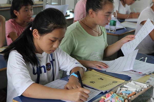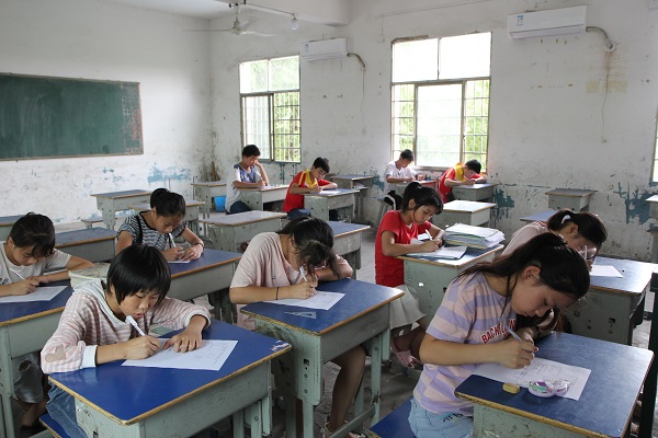 7月19日下午英国365集团学生社团联合会赴衡阳县暑期三下乡社会实践团完成规定的教学任务,为了检验学生们的学习成果,实践团各成员均组织学生进行了总结测验。