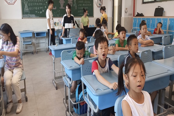 课堂伊始,在所有老师的指挥带领下,小班和大班集体演唱校歌,熟悉歌词以及节奏。同学们都表现良好,声音洪亮。然后,秦紫曦和赵琪霞要求同学们背唱校歌,并组织安排演唱队列。同学们按照次序站好,开始正式排练合着伴奏背唱校歌,充分展现了小学生的朝气蓬勃。