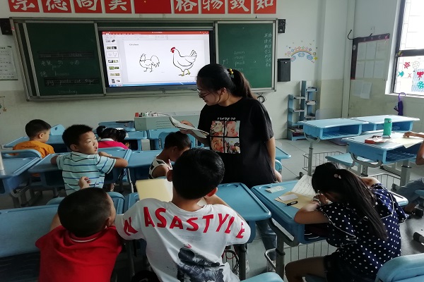 因小班基础薄弱,还未正式学习英语。此次授课主要以趣味性内容为主,谭伟玲从水果单词入手,再到动物单词,教会同学们基本的发音与书写,并通过播放英文歌曲来激发同学们的兴趣。课后,布置相关英语作业。同学们学习热情高涨,教学任务得以完成。