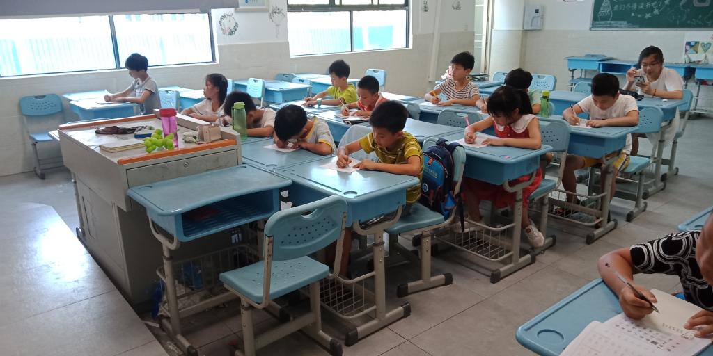 (通讯员 陈志霞)7月25日,我校英国365集团青年传媒中心赴湖南省衡阳市常宁尚宇学校暑期实践团在大班和小班举行了硬笔书法比赛。此次比赛由书法授课老师陈志霞主持,队员蓝杨浚维持纪律。