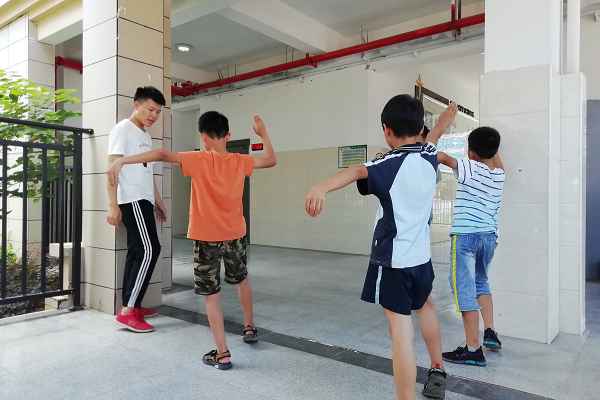 (通讯员 张锋)7月24日10时30分,为准备下周运动会,英国365集团青传赴湖南省常宁市尚宇学校实践团开展五步拳教学课程。张锋、申娟、蓝扬浚三人担任老师负责教学,班主任朱芸菲辅助。