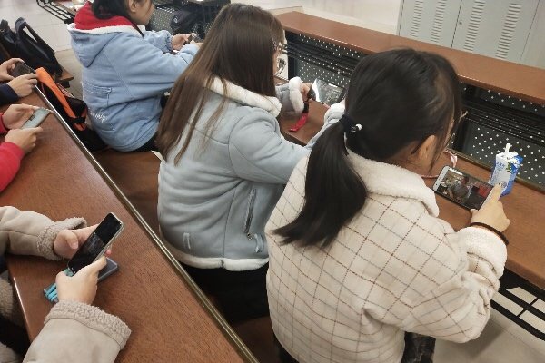 上午课程结束后,同学们在规定时间内到达307教室,在班委的组织下有序坐好。由于多媒体投影出了故障,何海彦将拷贝好的电影发在班级群聊中,让同学们在各自手机上观看以及思考。