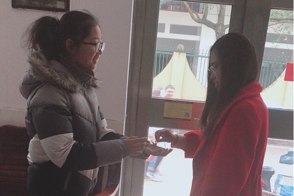 活动由唐丁在江边食堂发放纸片和中性笔,教大家如何折叠百合花、千纸鹤。然后志愿者动手完成折纸工作,并在纸上写下感谢的话语。完成制作后,志愿者分别将自己的折纸赠送给自己感恩的人。