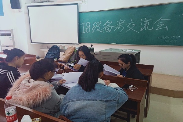 学习部部长韦东东对此次活动的开展做了相关的介绍。18级各学委们为活动准备了丰富的备考资料,相互交流如何准备考试,热烈地讨论备考方案,并提出了具体做法。此次交流会使各班学委明确了备考方向,激发了大家备考的热情。