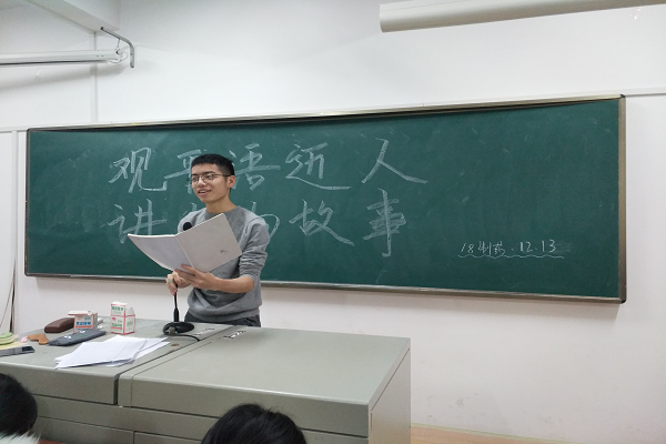 (通讯员 宋诠憬)12月13日9时50分,1808青马小组全体成员在化学化工学218教室,举行了“观‘平语近人’,讲人物故事”主题活动。此次活动由青马20小组组长蔡子浮主持。