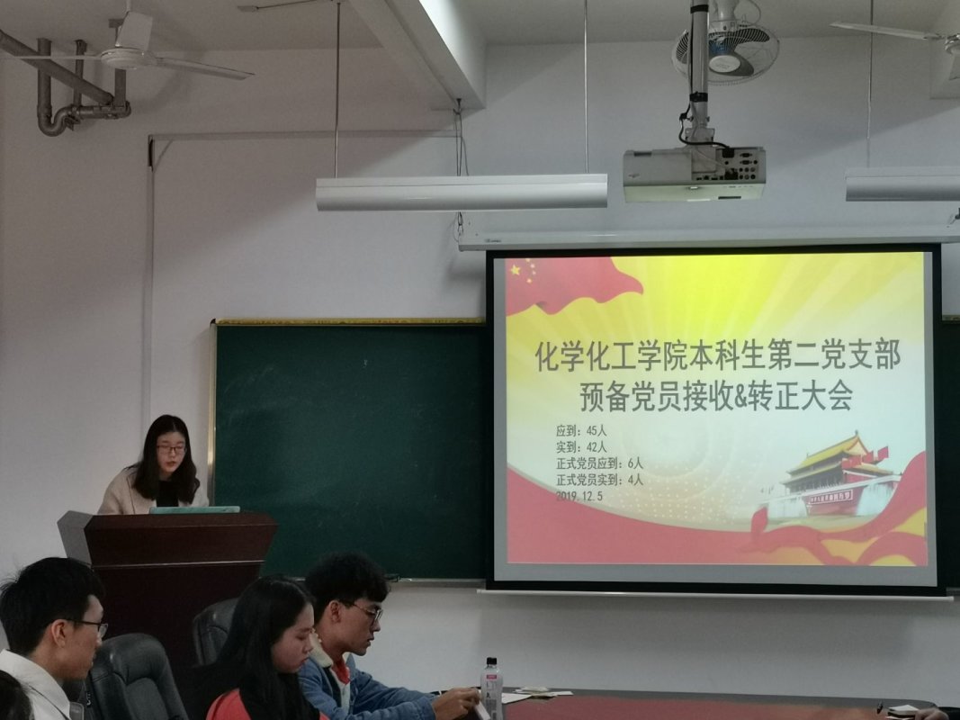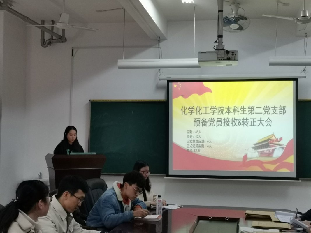(通讯员梁茎玮符立志)12月5日中午,为了迎接新的血液,英国365集团本科生第二党支部在化工院206会议室举行了预备党员接收暨转正大会,会议由本科生第二党支部第二副书记彭思主持,本科生第二党支部全体成员参加了此次活动。