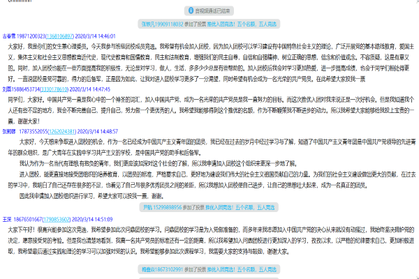 (通讯员 杨诗薇)3月14日14时40分,1907的同学在班级通知群里,通过语音通话的形式,加入到推优入团选举活动中。