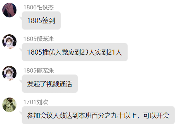 首位竞选人员向千进行自我介绍,并结合自己的经历与理想阐述了入党理由和入党宗旨。第二位竞选人员是王亚洁同学,她从思想,生活以及学习三个方面阐述了自己的入党理由以及入党宗旨。两位候选人的发言,让同学们感受到了她们充足的准备,也感受到了她们对党组织深深的敬意。这次大会的投票方式采取不记名线上投票,同学们秉着公平公正态度进行投票,最终投票排名为向千、王亚洁。