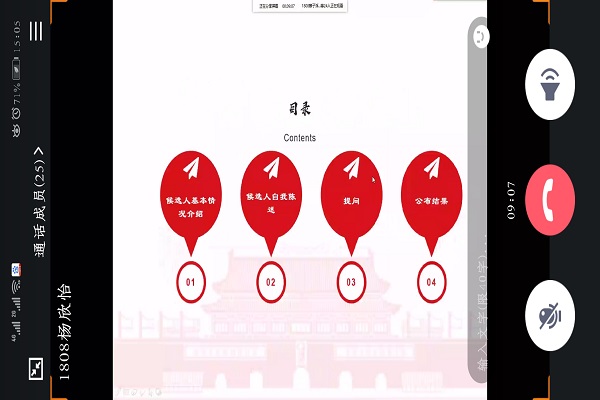 杨欣怡先对举办推优入党班会的意义以及规定名额、选举方式等问题做出了详细解释和说明。班级共有两位候选人,分别为谭若丹和邹新雅。杨欣怡邀请两位候选人主动开麦发言,阐明他们加入中国共产党的理由与各自的优势。