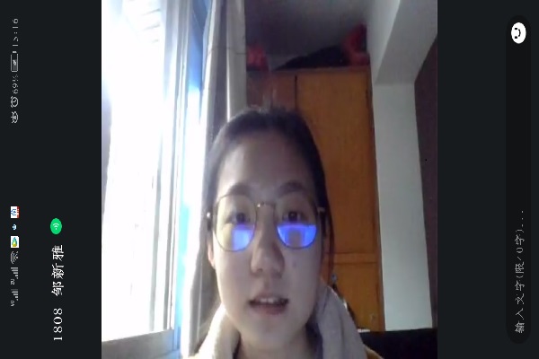 (通讯员 秦静怡)3月21日15时,1808团支部推优入党线上班会准时开展。此次班会由团支部书记杨欣怡主持。此次班会除1808团支部25位同学参加外,我们还邀请到了组织部王斌共同参与。