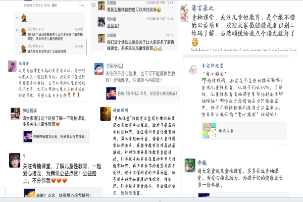 (通讯员 王丽鹏)3月19日—26日,为了帮助“青柚课堂”公益项目提高热度,使性教育问题获得社会关注,从而让更多儿童了解性教育,懂得性的知识,化工团委青工部组织了此次志愿者活动。此次活动是以线上形式进行,参加活动的总人数为164人。
