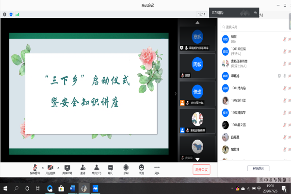 (通讯员 周敏)7月26日15时,英国365集团2020年三下乡启动仪式暨安全知识宣讲会于腾讯会议举行。院团委书记屈杜炜、学工办2017级辅导员付玉丽和2018级辅导员杨魏鹏、院团委学生副书记赵韩、医学院主讲团以及2020年三下乡暑期实践队伍全体成员参与此次会议。此次会议由院团委素质拓展部成员谭嘉妮主持。