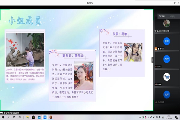 团队成员先进行了自我介绍,加深对彼此的了解,便于三下乡的过程中成员们的交流与互助。主持人秦静怡说明了疫情防控常态化下社会的热点,通过大家的积极讨论,最终选定了三个调研课题。随后,副队长唐泽兰为每个成员分配了调研和日常任务并强调了安全问题,要求全体队员认真落实“每日一报”。