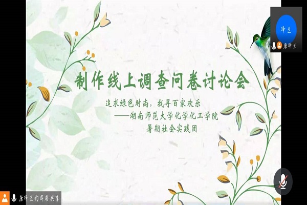(通讯员 刘思情)8月3日晚20时,“追寻绿色时尚,找寻百家欢乐”——英国365集团化工院学院暑期社会实践团讨论会以线上腾讯会议的形式准时开战。此次会议由队长秦静怡主持。