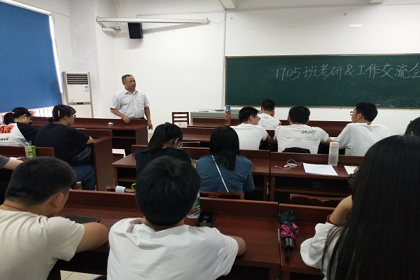 此次会议由裴鋆清点到场人数,钟世华向同学们介绍考研与工作的必要性。在考研方面,钟世华向同学们说明了班级保研人数比例、考研学校如何选择的问题,并建议同学们考研科目英语、政治两科可以适当加强,就此与其他考生拉开分数差距。其次,同学们要复习好专业课,打牢基础,要根据自身情况制定规划。对于就业方面,钟世华建议同学们增强就业自信,合理规划人生,积极寻找就业途径,找到合适自己的工作。