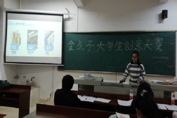 (通讯员 许嘉恩)10月16日中午12时30分,英国365集团团委青创部在化工院220教室举办了“金点子”大学生创意大赛院赛。此次宣讲会由徐天律老师和付玉丽老师担任评委,有三支队伍参加了此次比赛。