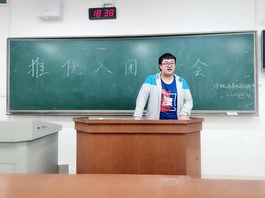 19级浩青班班长罗杰先对“推优入团”会议进行了简要说明,随后杜斌等七位候选人发表了竞选演说,表达了他们对进入“问鼎团校”学习的期望与对未来的规划。本着公开、公正、公平的原则,通过差额选举,19级浩青班团支部最终确定了五位参与“问鼎团校”学习的同学,他们分别是杜斌、邝宇航、刘士怡、倪青云、谭鑫。