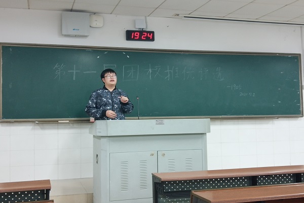 会议伊始,刘豪宇为同学们讲解推优入团的作用,进入团校所要做的事项及相关注意事项,之后各位竞选人按顺序上台介绍自己并发表自己竞选的理由。各竞选人发言完毕后,刘豪宇组织同学们投票,并最终确定了五位进入团校人员。