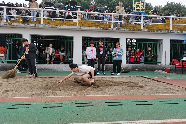 赛场上,运动员们激情飞扬,团结奋进,主持人在主席台上热情洋溢的宣读着来自各院的加油稿件,整个田径场的氛围热烈。在运动会开幕式,化工院党委副书记罗艳老师亲自来到田径场慰问运动员,关心运动员的身体情况,为大家加油鼓劲。学工办主任屈杜炜老师来到服务点关心文体部工作,向同学们强调了身体第一比赛第二的原则。31日上午18级辅导员谢云霞老师来到风雨长廊的服务点,指导文体部工作,关心运动员与志愿者。