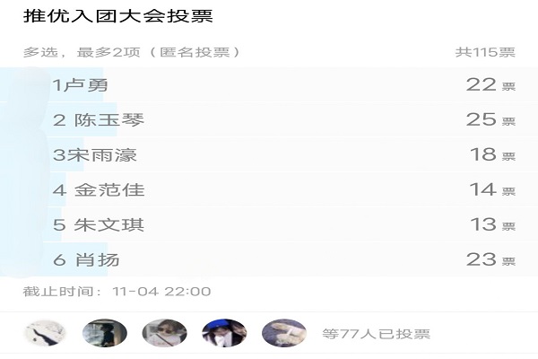 (通讯员 李威)11月4日晚上8时30分,英国365集团球舍协会团支部召开推优入团会议。会议以线上选举投票方式进行,由球舍协会理事长夏雨欣主持,参会人员为球舍协会全体成员。