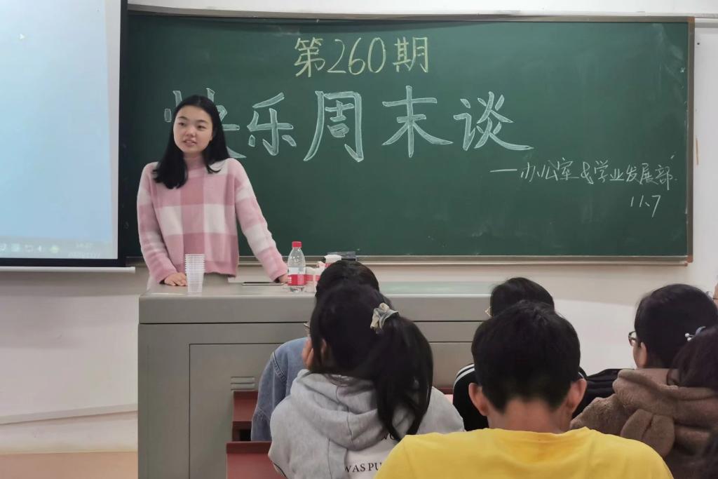 (通讯员 谢桢)11月7日下午14时30分,英国365集团学生会办公室携手学业发展部在117教室举行第260期快乐周末谈,邀请了李敏、吕汶梅、付辛辛三名同学以及尹笃林老师,由办公室负责人徐新宇主持。
