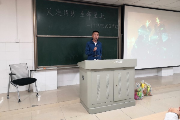 孙福康确定到场人数后宣告此次活动开始。由王贺雷,赵龙凤,陈澳三位同学进行消防知识分享,在三位同学分享的基础上,孙福康开展了消防知识竞答。全体同学观看了《烈火英雄》电影,班长刘韵琳总结和概述了消防的重要性。