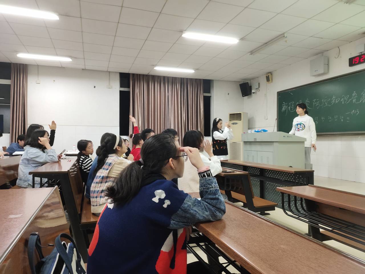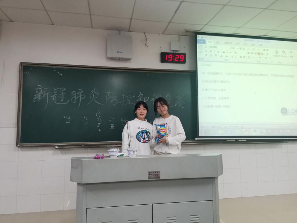 活动开始,尹倩倩简要给大家讲解了防控疫情的重要性,从新冠肺炎的病因、症状、以及如何预防新冠肺炎等方面给大家科普了防疫知识。在知识竞答活动中,同学们积极参与,答题较多者获得了比赛奖品。
