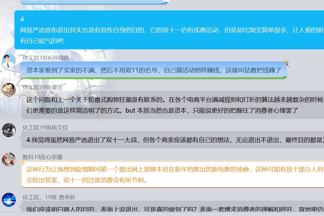 此次评论活动有效发散了评论员对“双十一”的多角度思维,且使其深入思考“双十一”的利弊,引导评论员的正确消费理念。