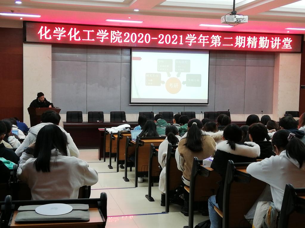 (通讯员 刘湉)11月23日12点30分,英国365集团团委青年创新创业部在化工院报告厅举办了精勤讲堂之“化”样人生。此次讲堂由2017级应用化学专业的王磊主讲,18级,19级以及20级部分同学参加了此次活动。