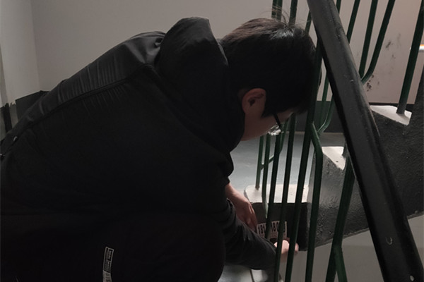 活动开展,陈彪预先观察小区小广告分布情况并向部分小区居民表达小组活动志愿意向。同学们整时在江边女生宿舍前集合并准备好擦除小广告的工具,志分小组分小区单元开展志愿活动,用准备好的水打湿并剔除小广告,以完整除去两栋楼房小广告。
